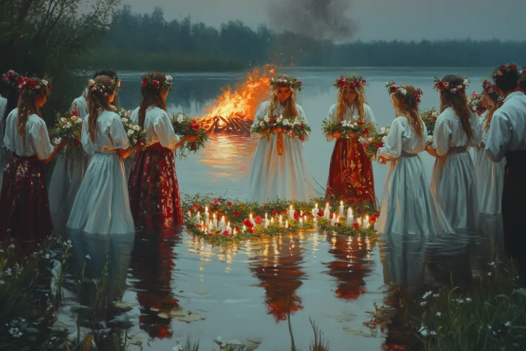 Ещё одна важная традиция — плетение венков из полевых цветов и трав. Девушки запускают венки по воде, наблюдая за их движением. Судьба венка помогает предсказать события в личной жизни, особенно касающиеся любви и брака.